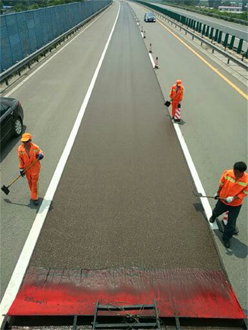 應(yīng)用范圍:     砂封層主要應(yīng)用于高速公路,一、二級公路瀝青路面的預(yù)防性養(yǎng)護(hù)。可以進(jìn)行美化路緣、路肩施工。經(jīng)過砂封層施工后可以改變新舊路面的外觀及顏色。施工說明:砂封層是一種層鋪的施工工藝。采用同步碎石封層設(shè)備將聚合物改性粘結(jié)材料和骨料金剛砂同時撒布施工的一種施工工藝。粘結(jié)材料應(yīng)選擇高濃高粘且具有一定滲透型和還原性。骨料需選擇耐磨的金剛砂。技術(shù)特點:(1)常溫施工,無需加熱,節(jié)能環(huán)保。(2)用來解決瀝青路表面瀝青老化出現(xiàn)的貧油狀況。(3)解決原路面出現(xiàn)的麻面、松散掉粒、輕微裂縫等現(xiàn)象。(4)新路面可以起到防水的作用。(5)增加路面摩擦系數(shù)和耐磨性能。施工工藝:封閉交通→清理路面→病害處理→砂封層施工→養(yǎng)生→開放交通